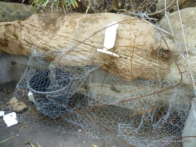Les bouts de polystyrène servent à ménager des espaces entre les deux rochers pour pouvoir, par la suite y placer des plantes (fougères)